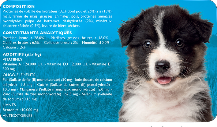 - Pour les chiots Grandes races et Géantes et les Junior toutes races